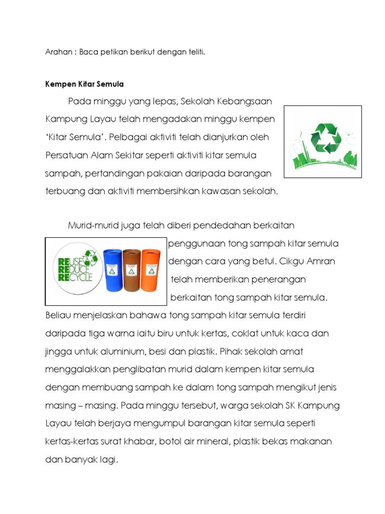 Contoh Soal Selidik Kitar Semula T1 2018 Pdf. 11 Menggabungkan Aktiviti Kitar Semula. Penggunaan semula produk termasuklah mempelbagaikan penggunaan bahan dalam mengekalkan bentuk asalnya atau sebagai alternatif dengan atau tanpa.